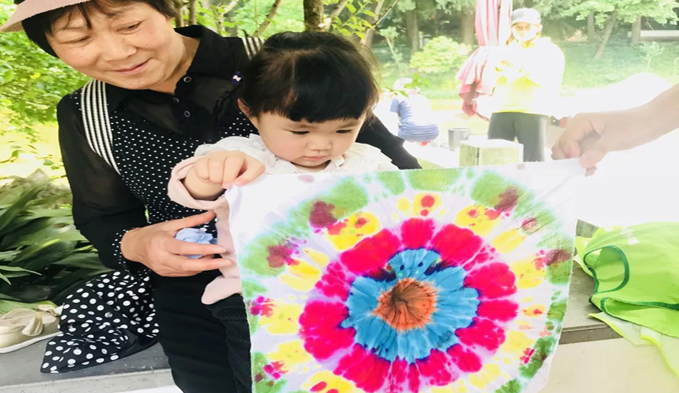 丰富多彩的图画就像一座奇妙的美术馆,亲子扎染的过程中,不仅可以让亲子关系更亲密,还能打开孩子对世界的认知大门,感知更多的真善美。