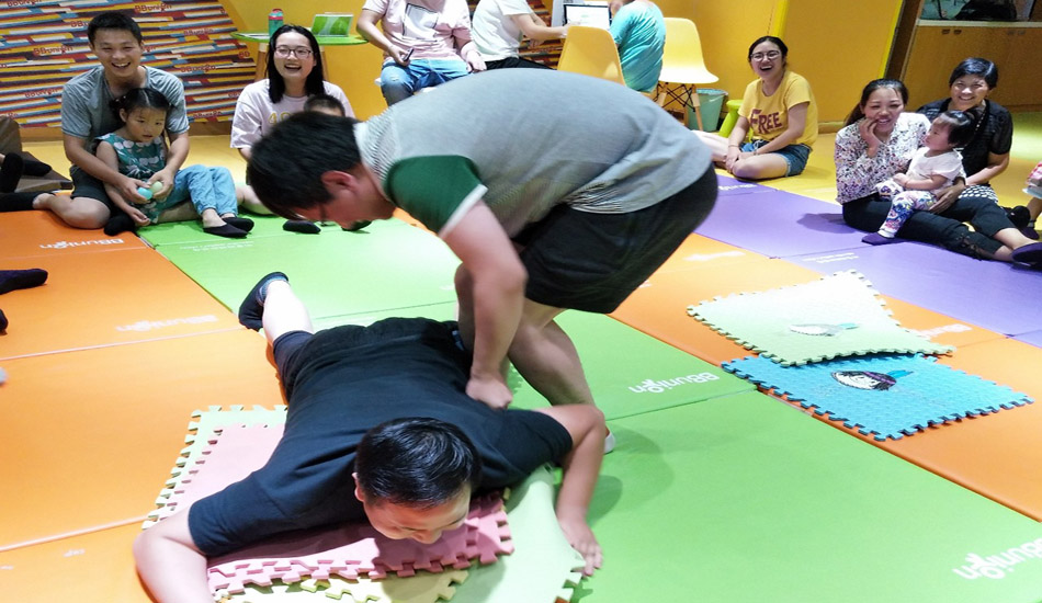 大家都相当努力认真的在互动呢,亲子间的爱,满满的传遍整个中心!!